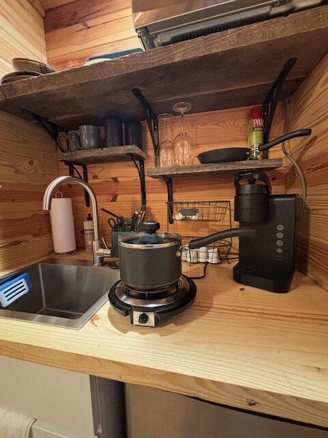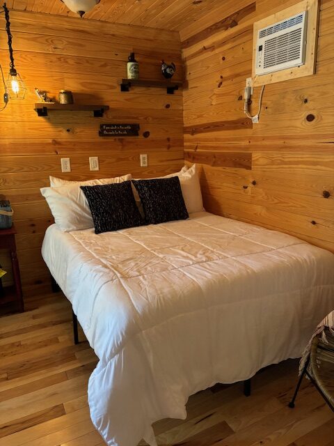 • Cabins are fully equipped with electric, ac/heat, full size bed, mini fridge microwave, Keurig and more!